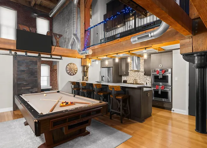 El Apartamento Two Story Penthouse - Walk To The Convention Ctr dispone de una cocina completa que cuenta con lavaplatos y un horno. El aeropuerto Internacional de Indianapolis está a 21 minutos en coche, y la parada de autobús Indianapolis Union Station - Greyhound, a unos cuantos pasos del Apartamento Two Story Penthouse - Walk To The Convention Ctr.